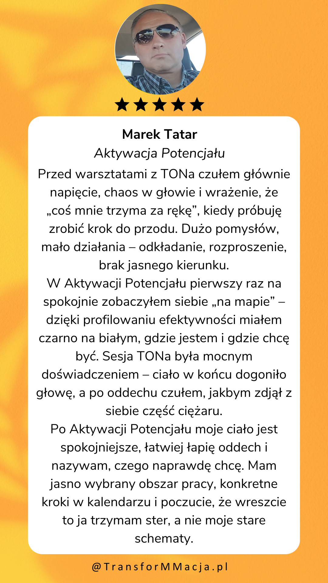 To proces – w którym poznajesz swój mentalny profil efektywności, uwalniasz blokady w ciele i uczysz się osadzać nowe reakcje w działaniu.
