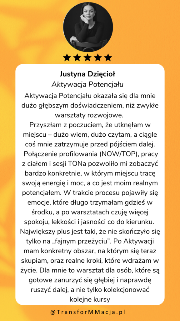 👉 doświadczasz swojej mocy, czujesz kierunek i zaczynasz działać w zgodzie ze sobą.